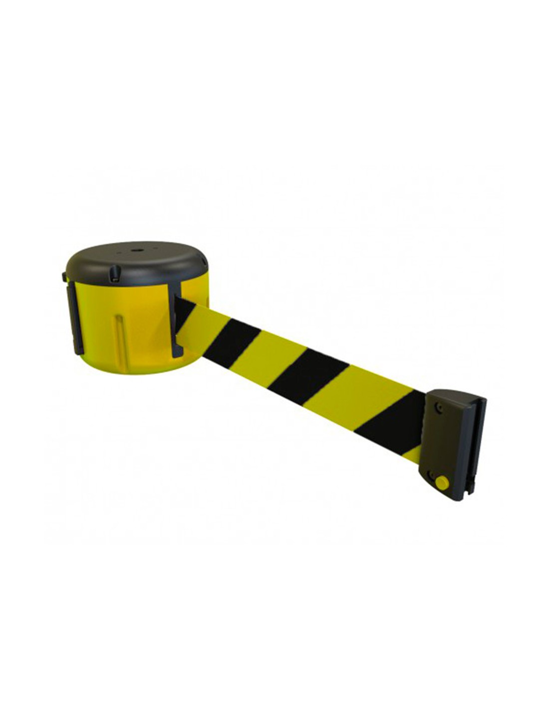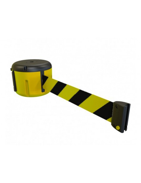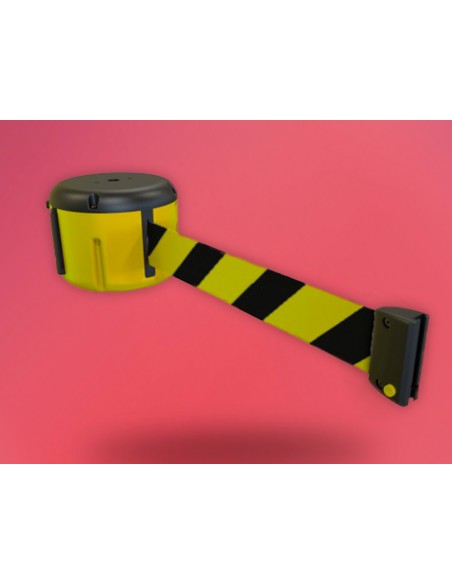 Cinta portátil retráctil Esta opción le ofrece una longitud de 9 metros para proteger sus espacios y hacerlos más seguros. Dispone de dos opciones de mecanismo, un sistema de recogida lento para evitar heridas a los usuarios, así como un sistema antirrobo. Su montaje es modular, que la hace compatible a todos nuestros productos.
