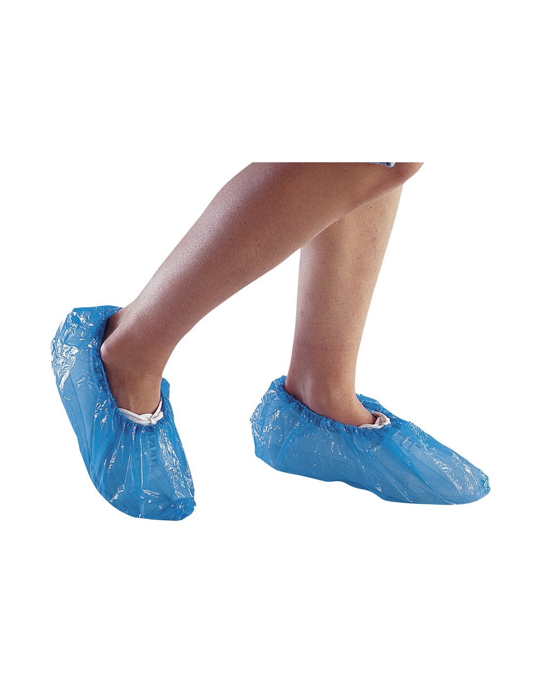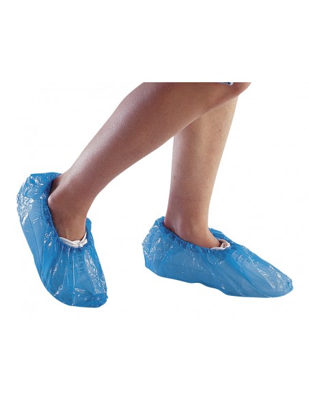 Cubrezapatos para visitante. Polietileno 25 µ. Elástico de ajuste en el tobillo. Color azul. Talla única. Bolsa de 50 pares.
