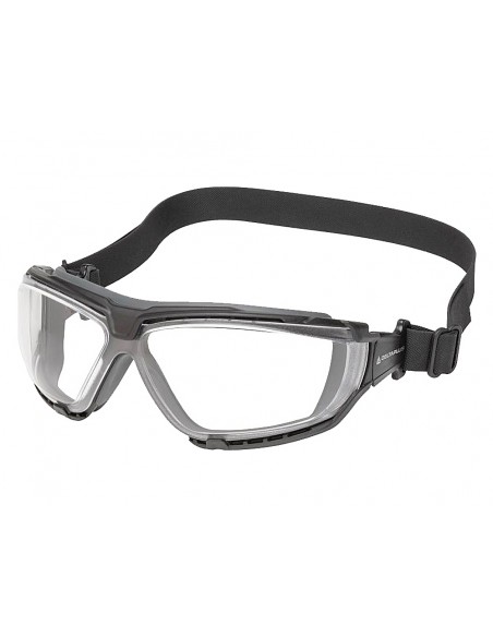 Gafas de policarbonato monobloque. Montura con junta de TPE para proteger los ojos de proyecciones sólidas o líquidas. Cinta elástica en neopreno con hebilla de ajuste para un mejor confort. La inclinación de la montura permite un ajuste fino para un mejor confort. Protecciones laterales.