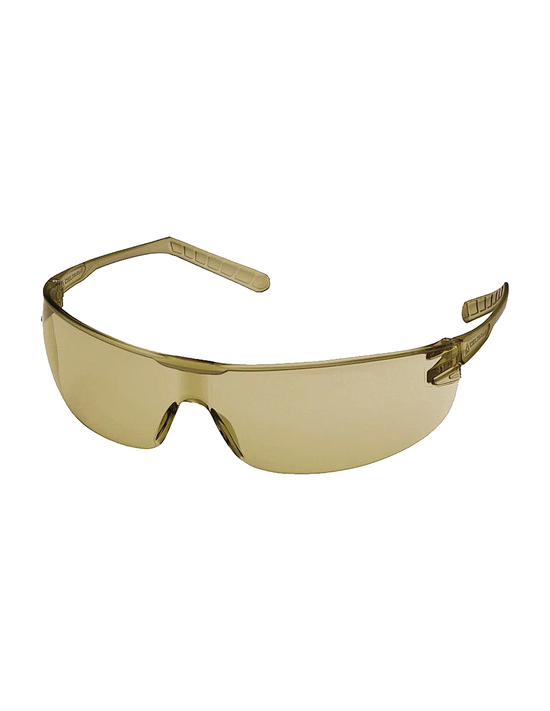 Gafas de policarbonato monobloque ultraliviano. Montura extrafina. Adaptadas para un uso de larga duración. Ocular filtrante del 65% de la luz azul para proteger los ojos de la radiación nociva de las pantallas. Color marrón. Antivaho, antirayaduras y antiestáticas.