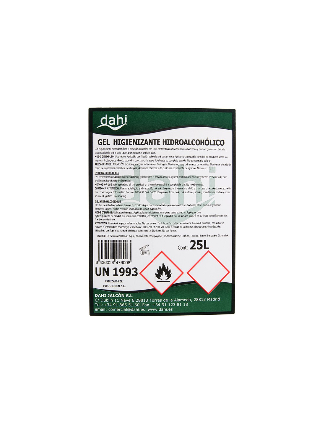 Gel hidroalcoholico higienizante dahi para manos garrafa de 25 litros