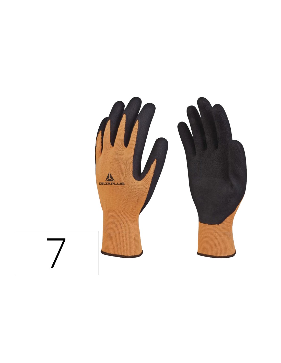 Guantes deltaplus poliester impregando latex palma y dedos naranja fluor/negro talla 7