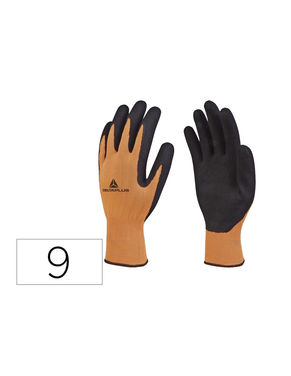 Guantes deltaplus poliester impregando latex palma y dedos naranja fluor/negro talla 9