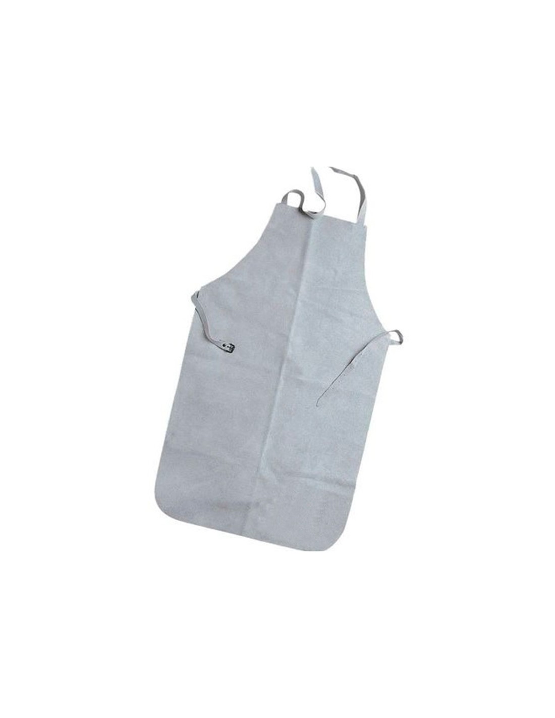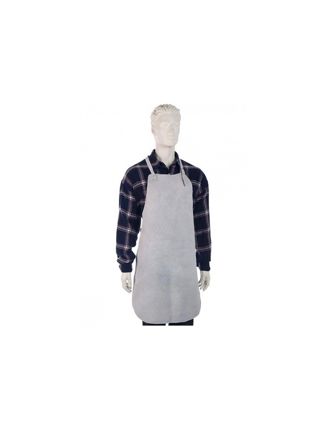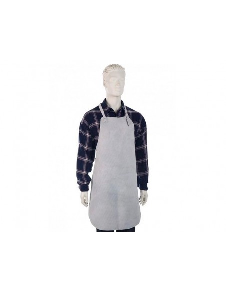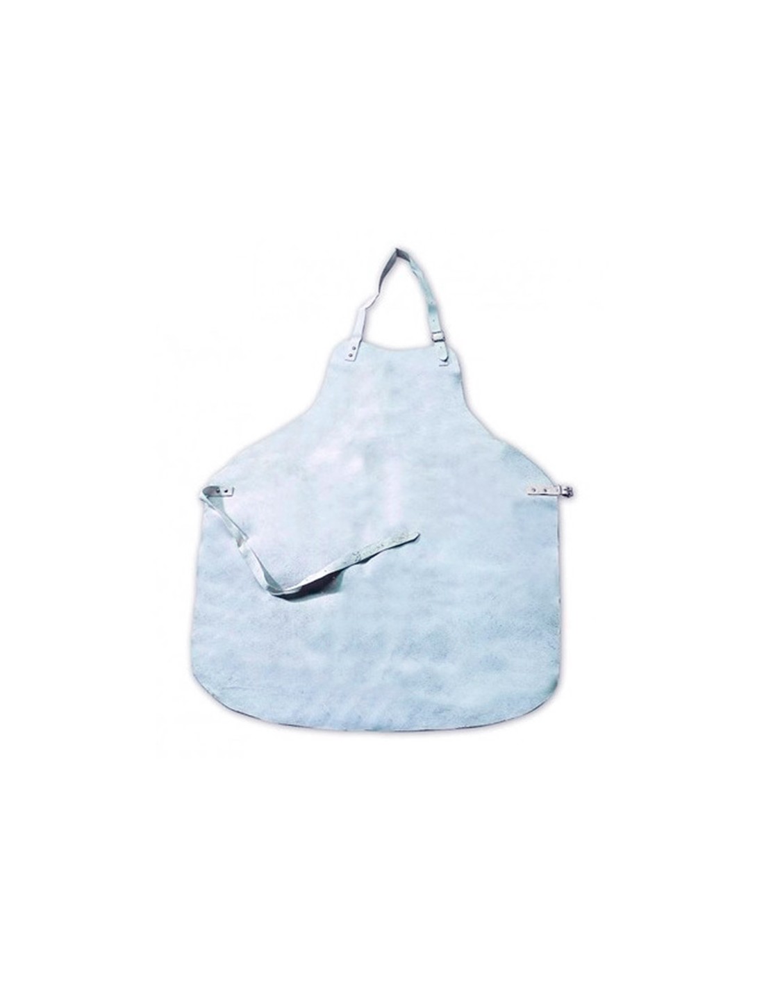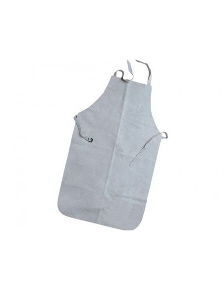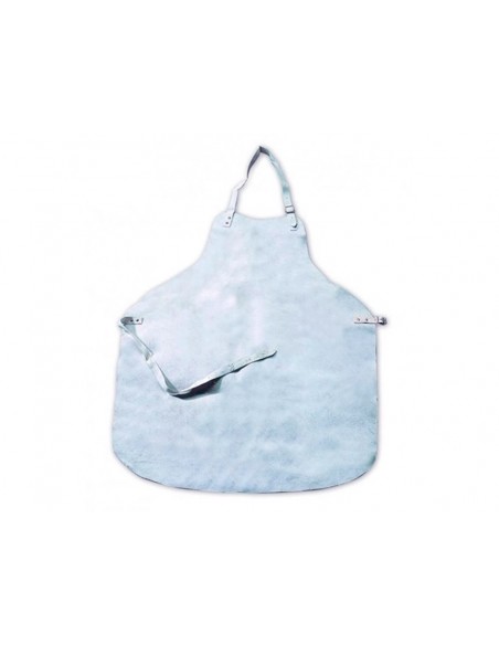 Mandil para soldador de cuero al cromo, destinado a la protección del tronco, de 90 cm de largo por 60 de ancho, que se sujeta mediante tiras de serraje y anillas.