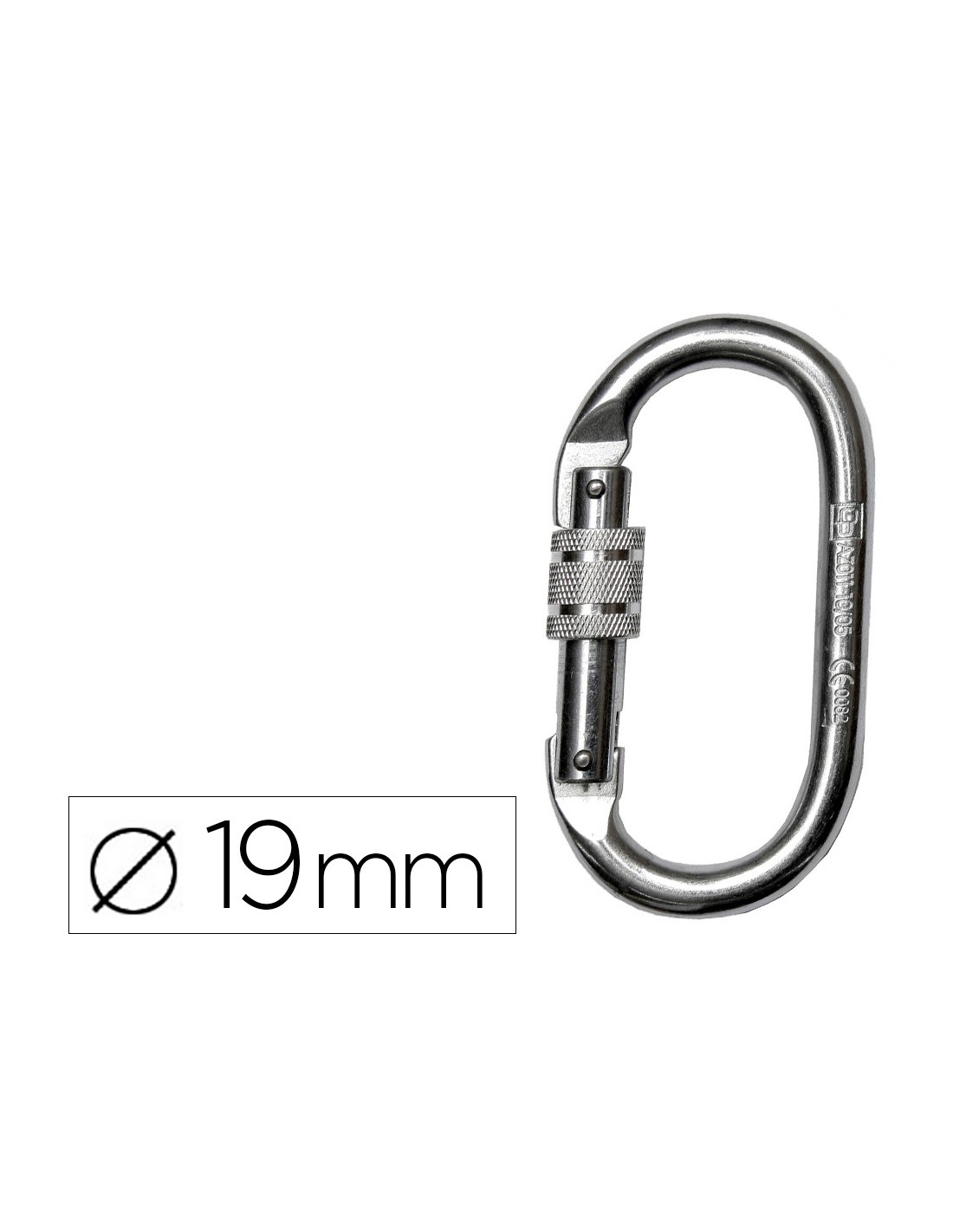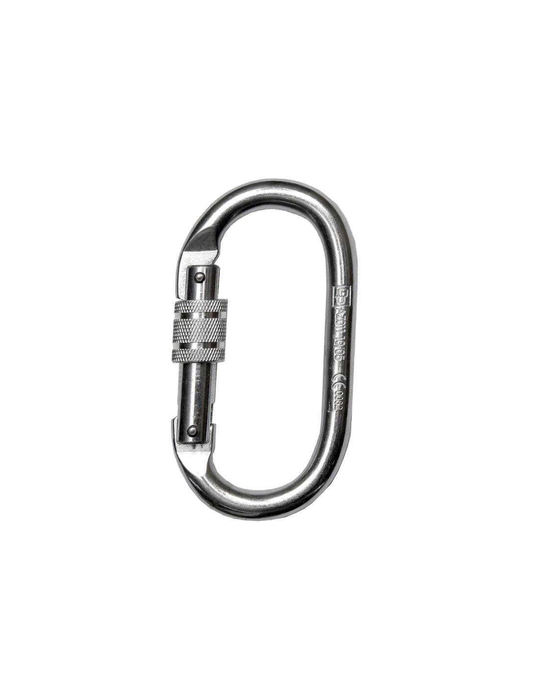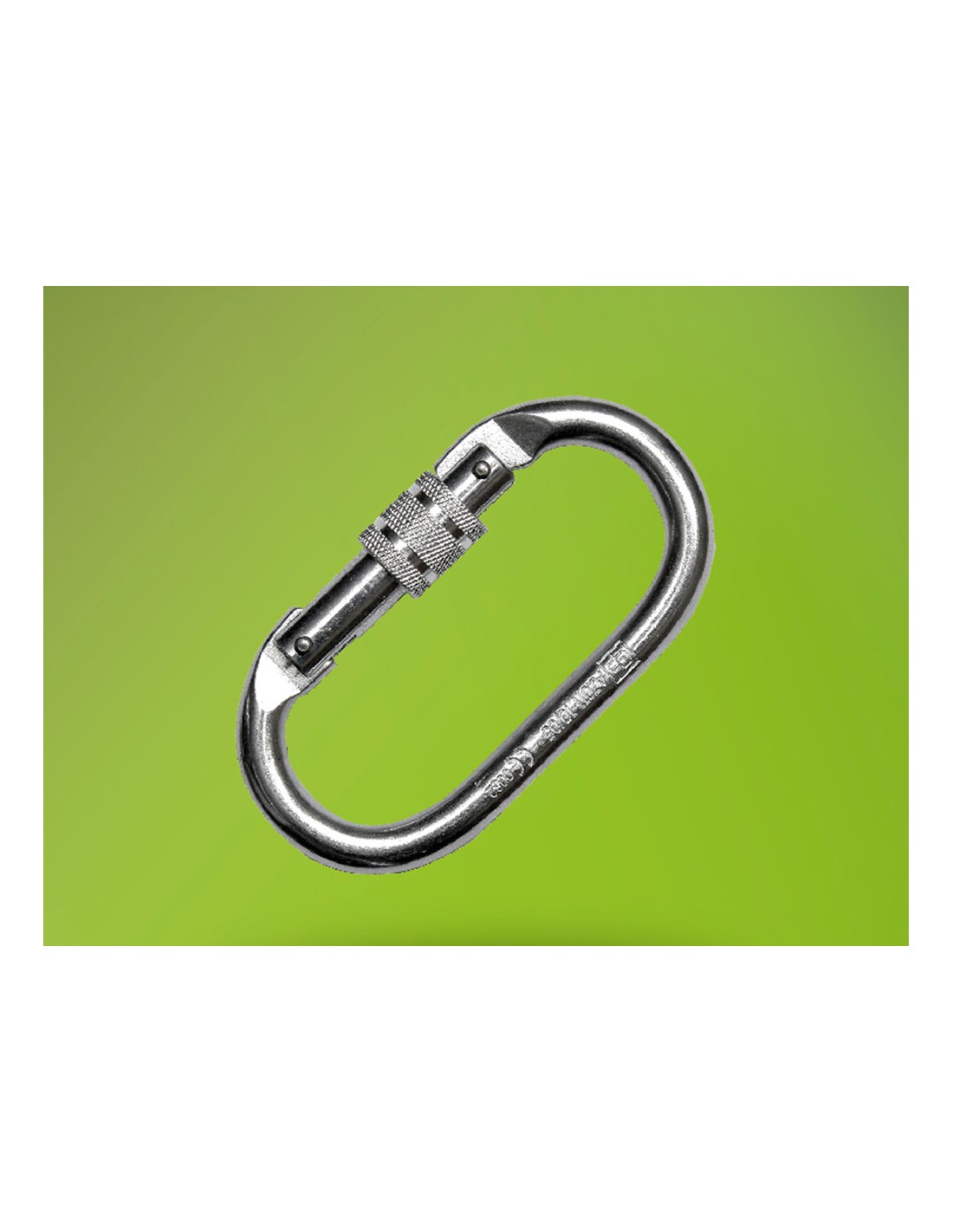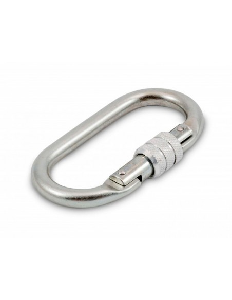 Mosquetón para conexión de equipos anticaídas, con cierre de rosca. Fabricado en acero galvanizado, resistente a la corrosión.