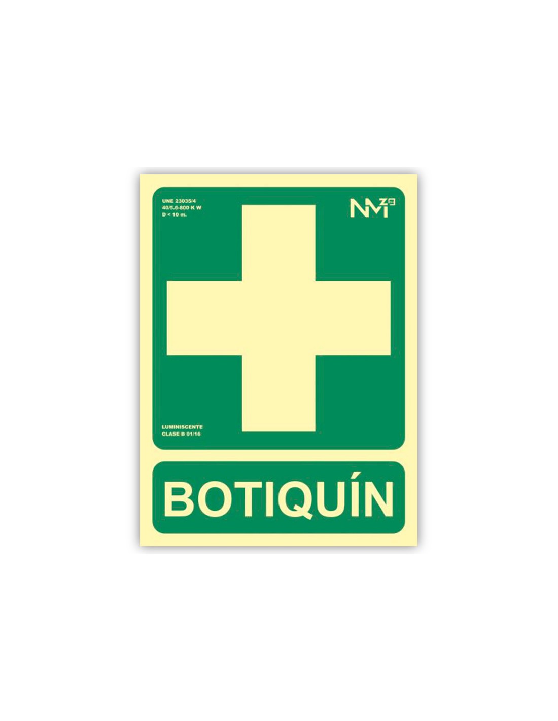 Serigrafiadas a 1 tinta + fotoluminiscente clase B. Botiquín.