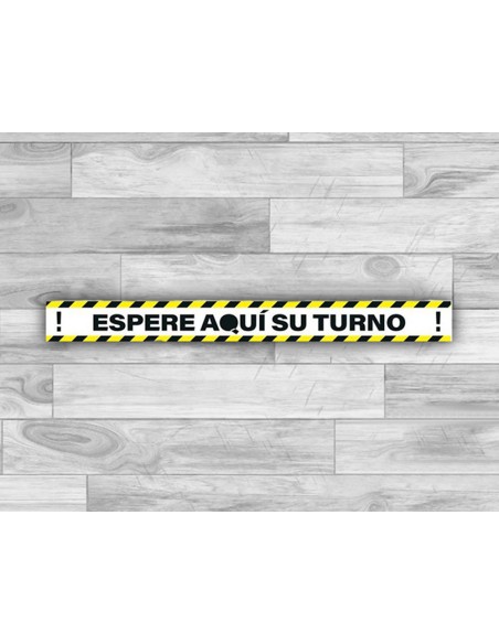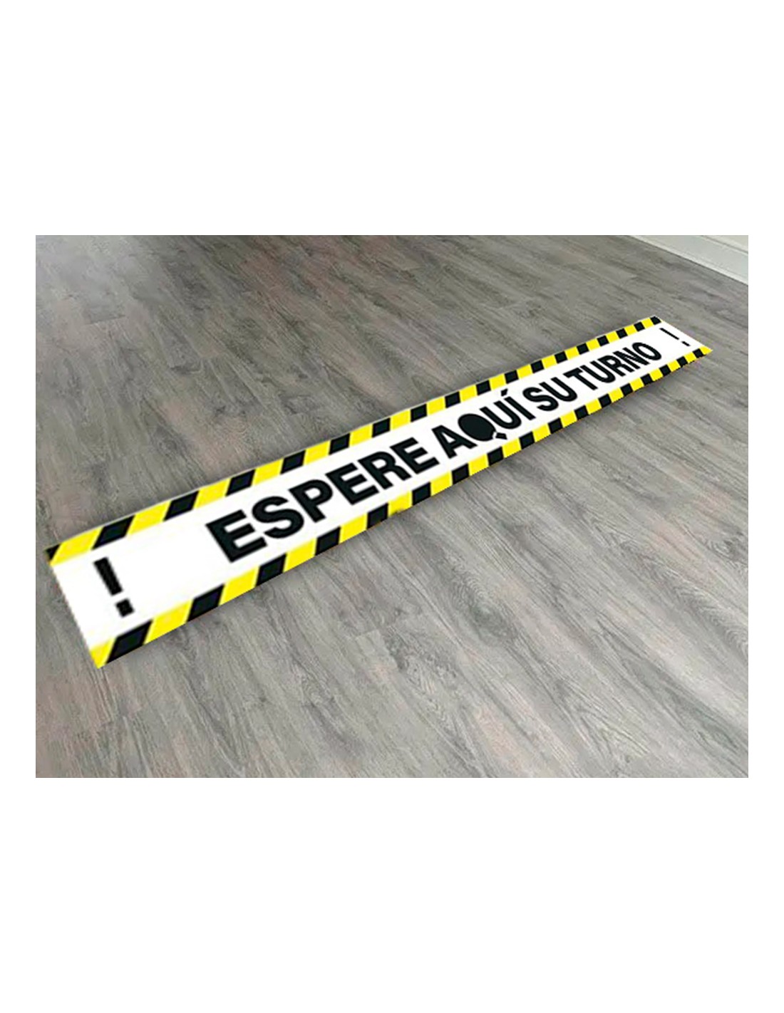 Pictograma archivo 2000 espere su turno mantega la distancia de seguridad vinilo adhesivo amarillo 100x700 mm