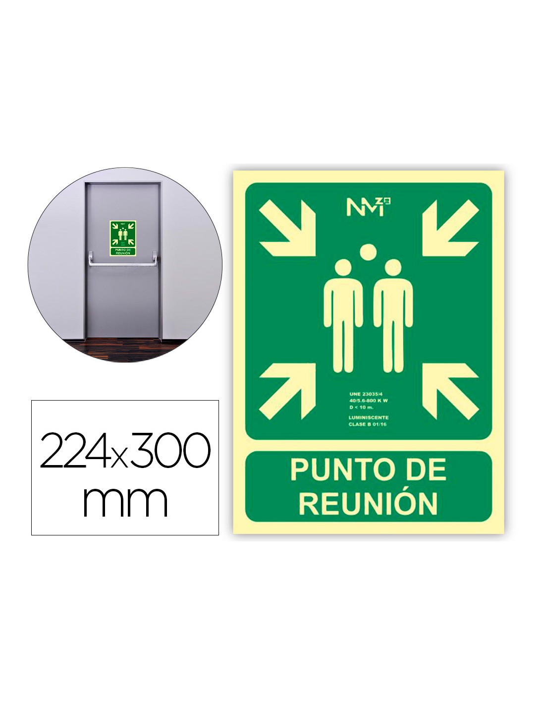 Pictograma archivo 2000 punto de reunion pvc verde luminiscente 224x300 mm