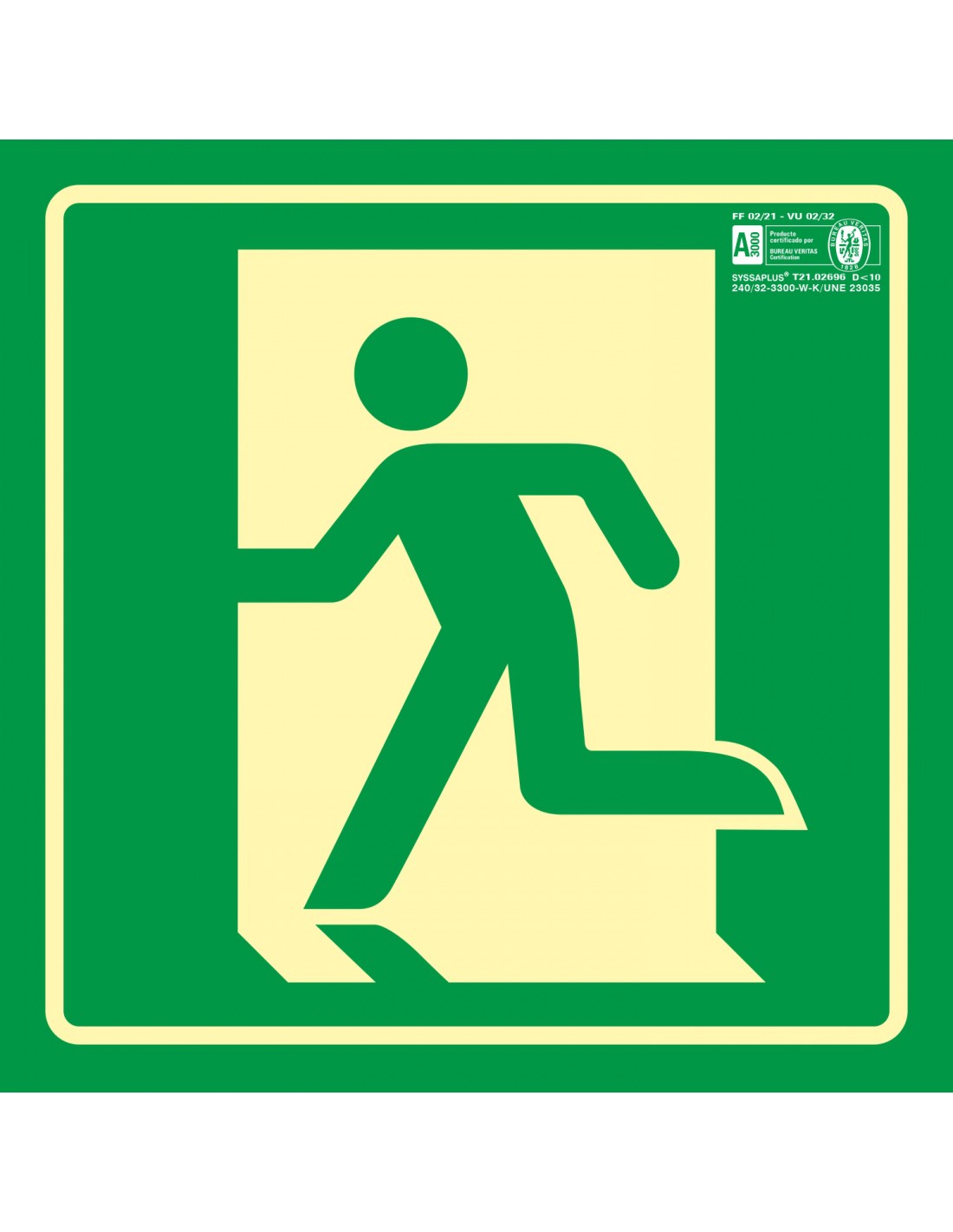 Pictograma syssa señal de salida de emergencia izquierda en pvc fotoluminiscente 210x210 mm