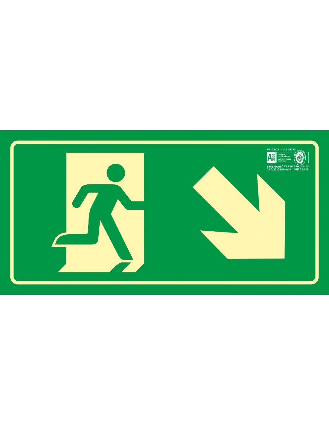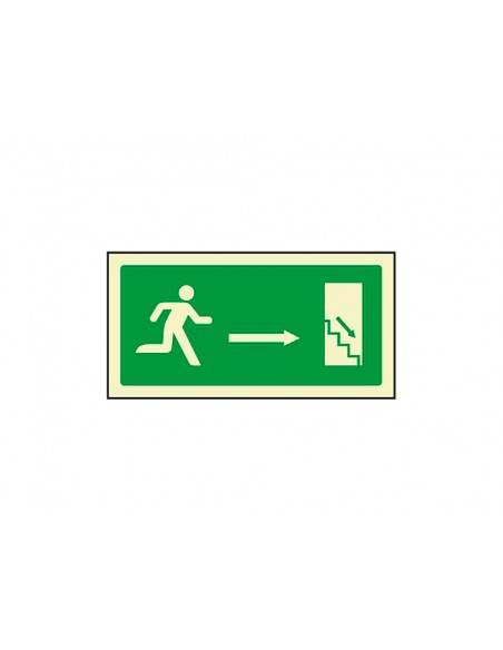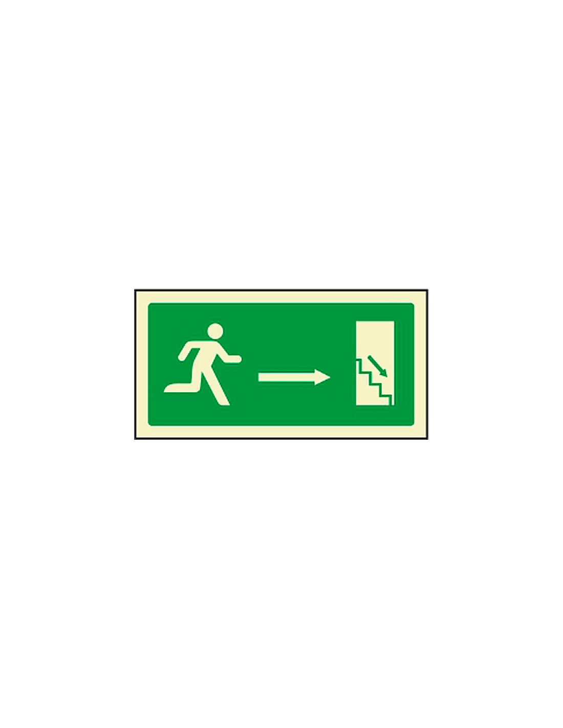 Pictograma syssa señal de salida emergencia derecha bajando en pvc fotoluminiscente 320x160 mm