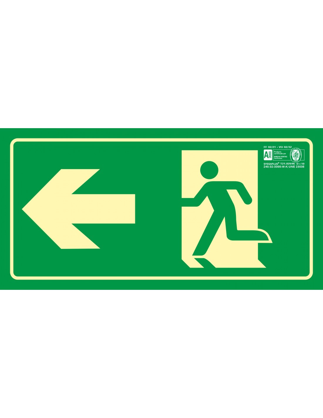 Pictograma syssa señal de salida emergencia flecha izquierda en pvc fotoluminiscente 320x160 mm