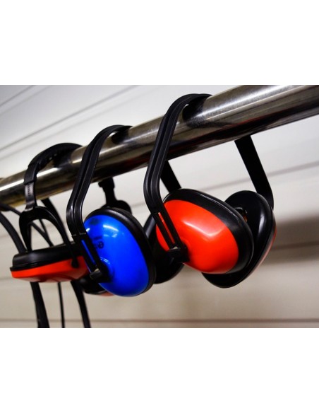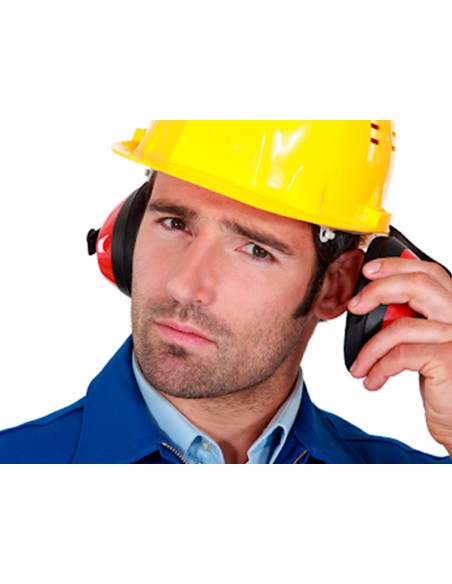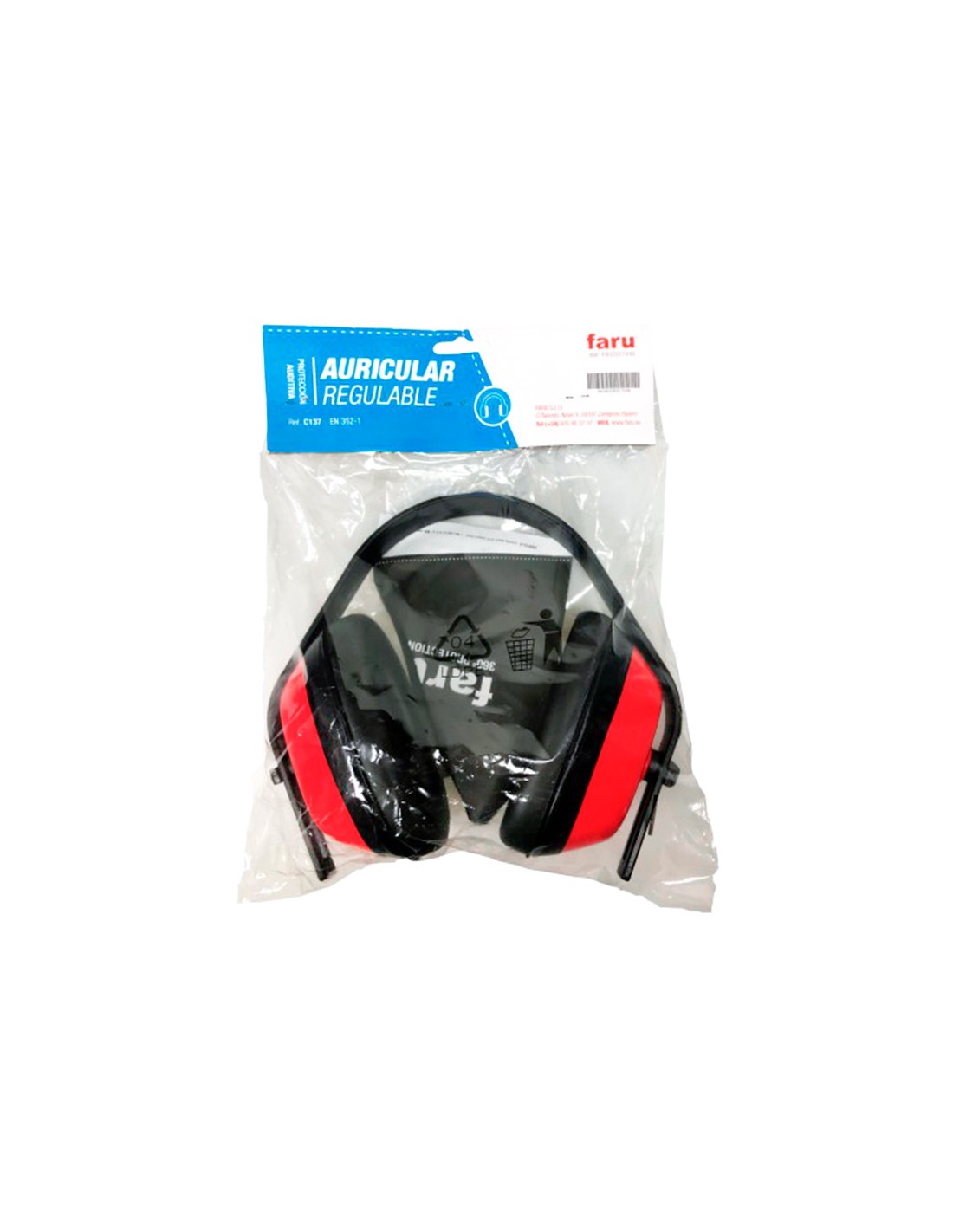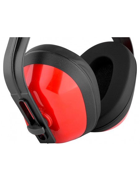 Protector auditivo básico, composición de cazoleta regulable en altura. Libre de partes metálicas. Ligero y resistente. Color rojo.