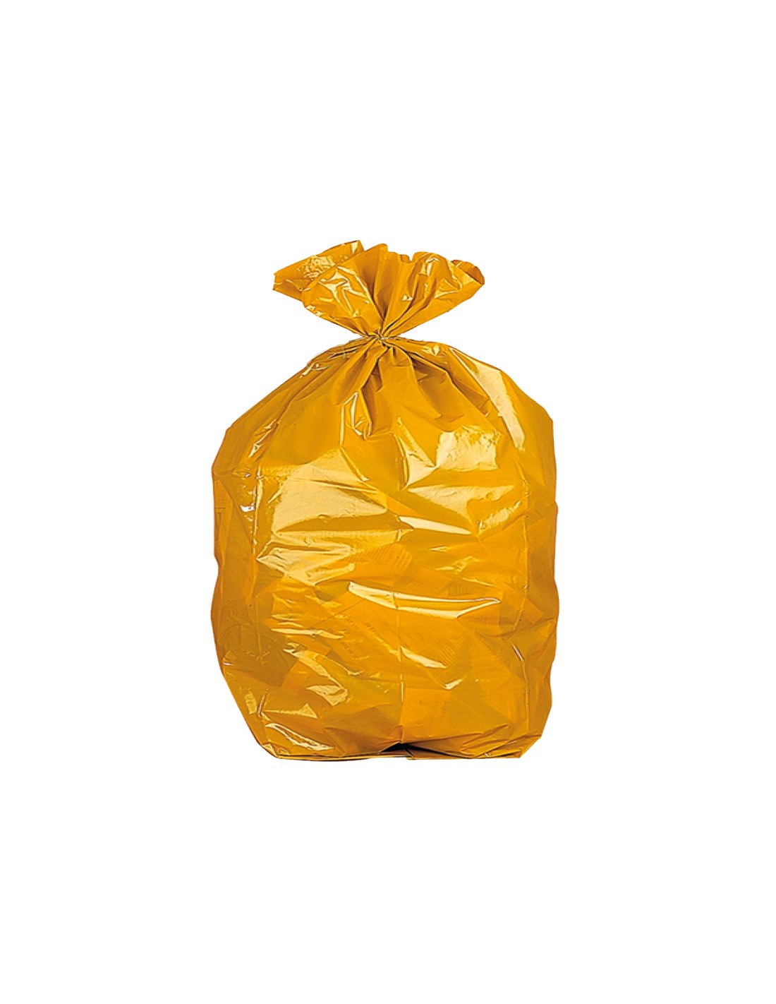 Bolsa de basura doméstica con autocierre color amarillo con galga 120. Rollo de 15 bolsas de 55x60 cm con 23 litros de capacidad.