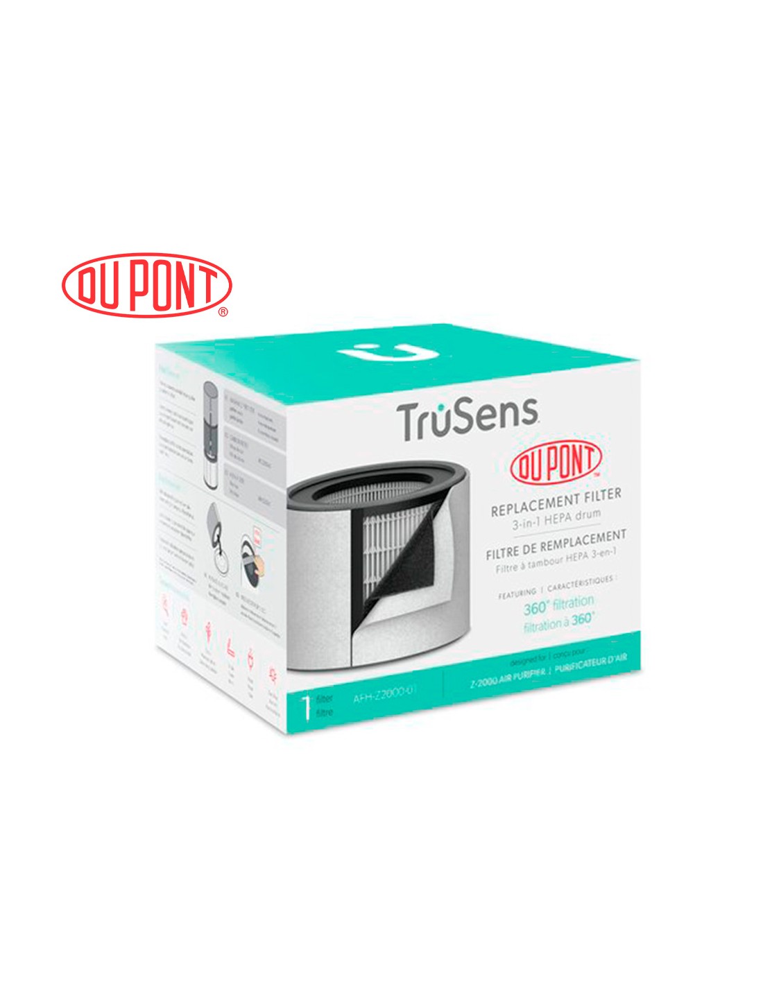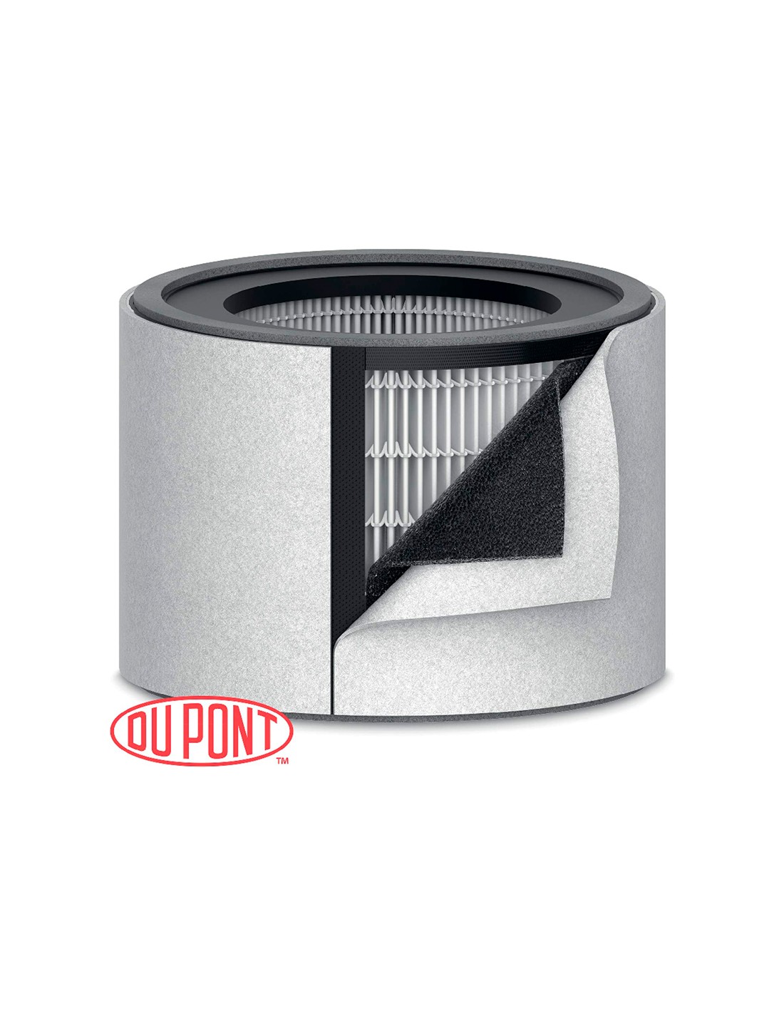 Filtro 3 en 1 de recambio HEPA más tambor DuPont para purificador de aire Leitz TruSens Z-2000. El filtro de tipo HEPA elimina contaminantes tan pequeños como 0.3 micras - eso es aproximadamente 30 veces más pequeño que un cabello. El prefiltro lavable ofrece el primer nivel de defensa contra el polvo y el pelo de las mascotas. Lavarlo a mano con un jabón suave según sea necesario.