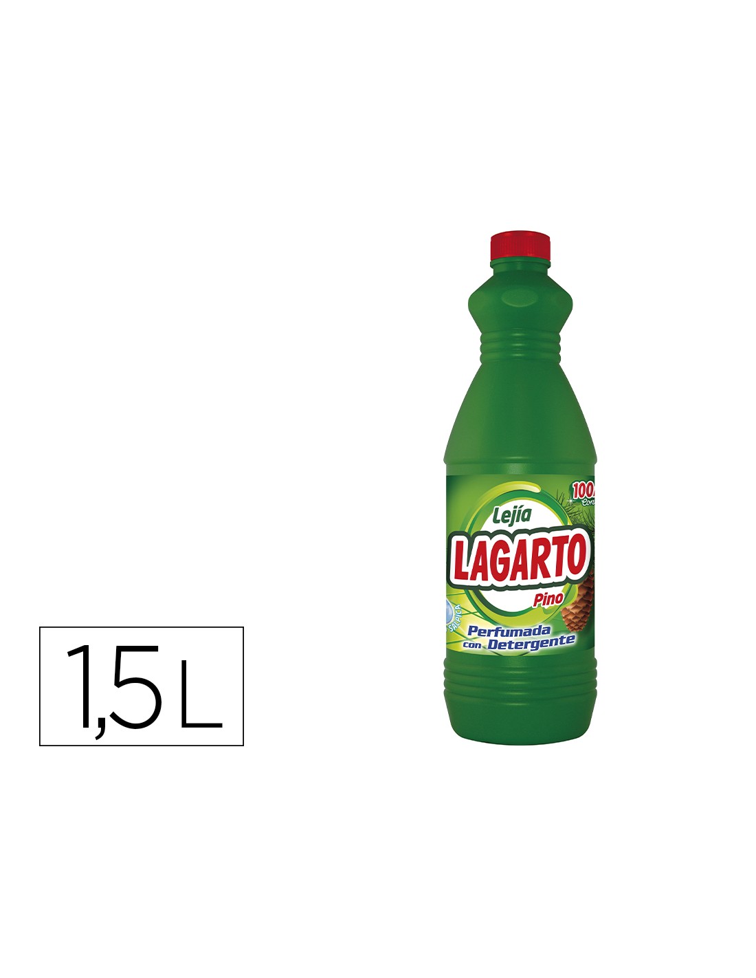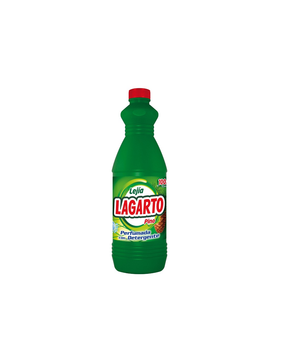 Lejía eficaz contra la suciedad con el máximo poder desinfectante. Con detergente y el clásico aroma de pino. La botella de 1,5 litros.