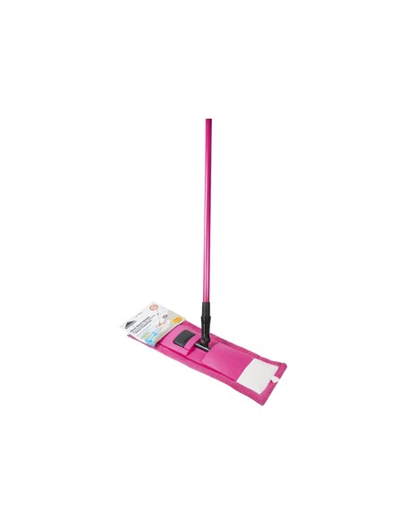 Mopa completa para limpieza, lavado y eliminación del polvo de los suelos. Multiusos. Base de microfibra. Mango telescópico con casquillo rotativo a 360°. Medidas 154,5 x 14 x 7 cm. Recambio de mopa plano fabricado en microfibra. Función 2 en 1 lava, absorbiendo la grasa y elimina el polvo sin dejar rastro. Medidas 25 x 14 cm.