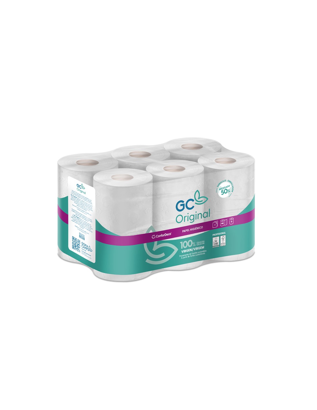 Rollos higiénicos de papel tisú suaves y absorbentes. Acabado microgofrado. 2 capas. Medidas del rollo 93 mm de diámetro x 90 mm de alto. Diámetro mandril 40 mm. 18 metros. Gramaje 18 g/m². El paquete de 12 rollos.
