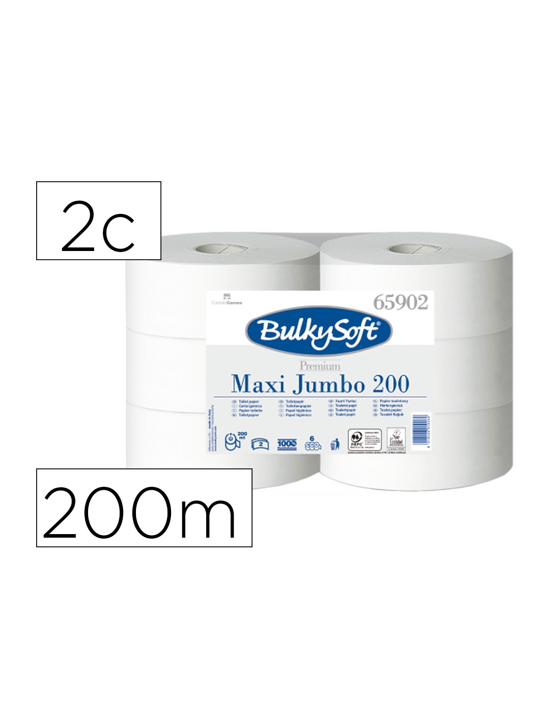 Papel higienico ofyhostel bulkysoft liso 2 capas longitud 200 mt