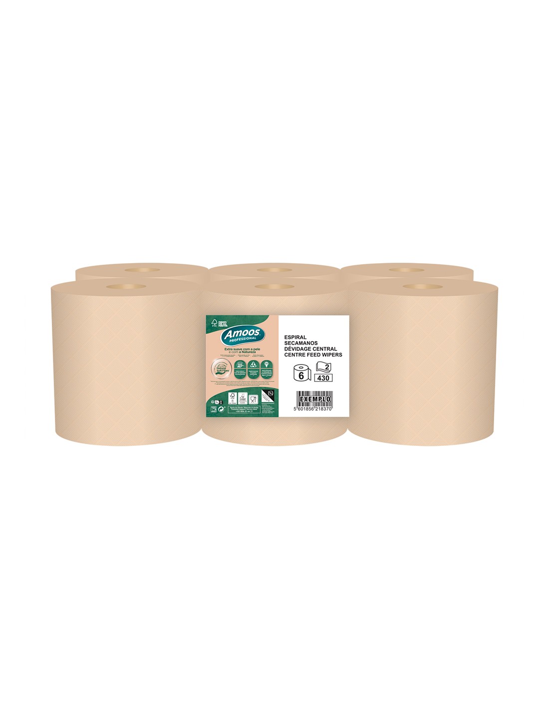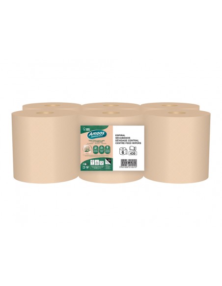 Papel secamanos amoos naturally soft 2 capas pasta cruda paquete de 6 rollos 125 m