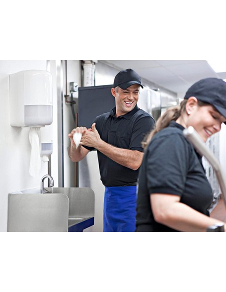 Ideal para absorber y secar. Apto para el secado de manos. Color blanco. Compatible con el dispensador M2. 2 capas. 150,2 m. 429 hojas. Medidas hoja 350 x 205 mm. Gramaje 19 g/m².