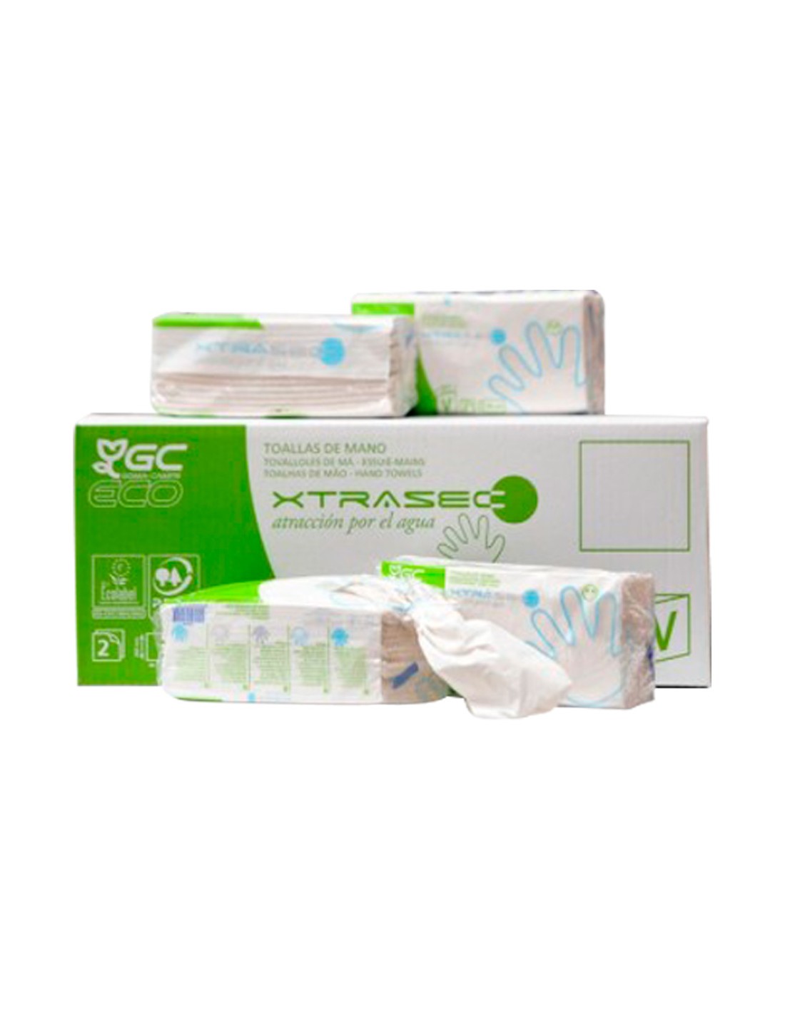 Toalla de papel mano engarzada ecologica xtrasec 20x23 cm 2 capas paquete con 196 unidades