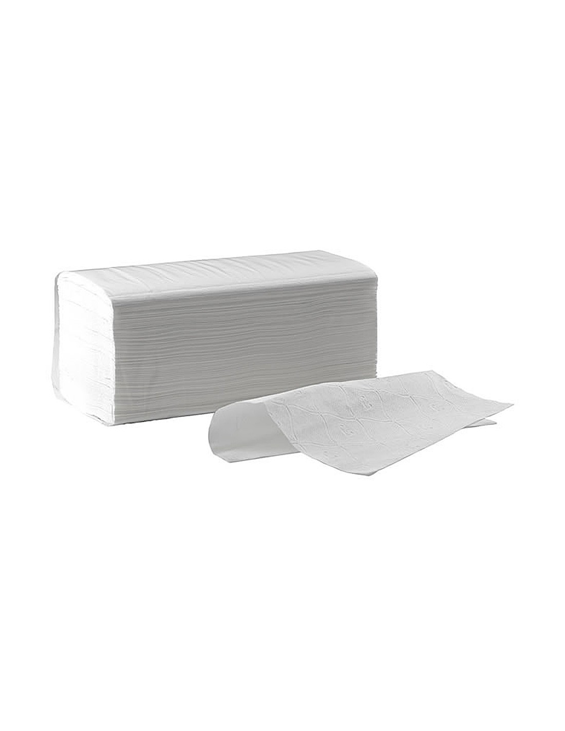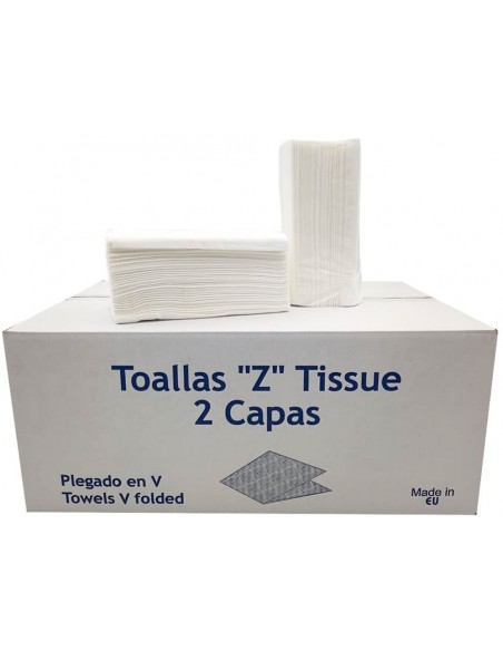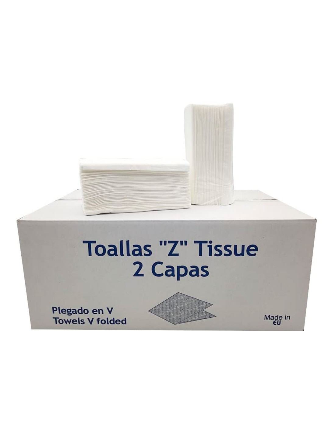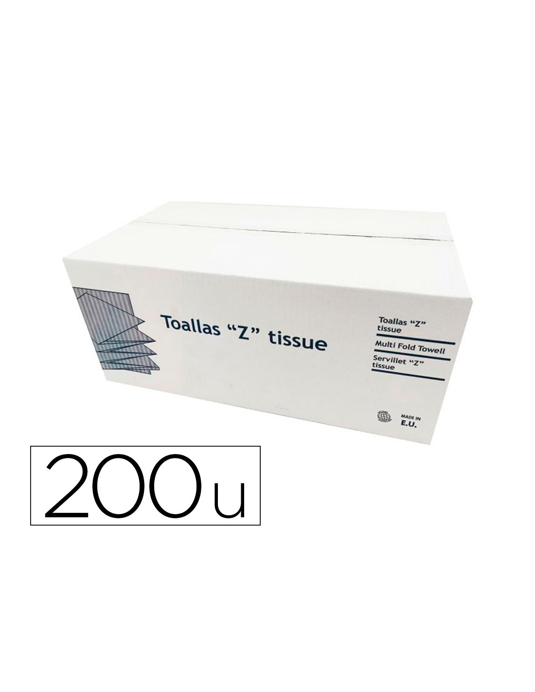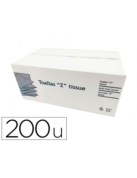Toalla de papel secamanos. Plegado en Z. 2 capas. Caja con 20 paquetes de 200 unidades. Medidas 225 x 210 mm.