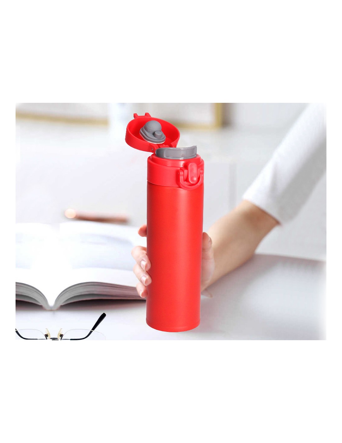Termo liderpapel acero inoxidable con doble cobertura y sistema de apertura facil con boton 330 ml 1349155