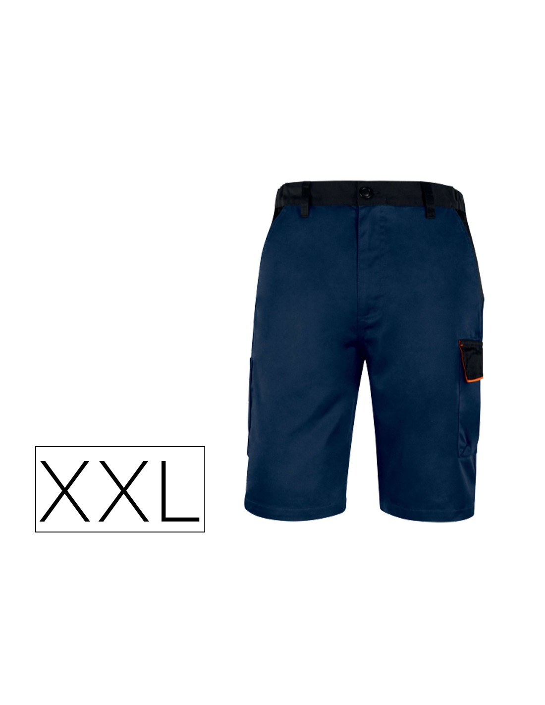 Pantalon de trabajo deltaplus bermuda cintura ajustable 5 bolsillos color azul naranjatalla xxl
