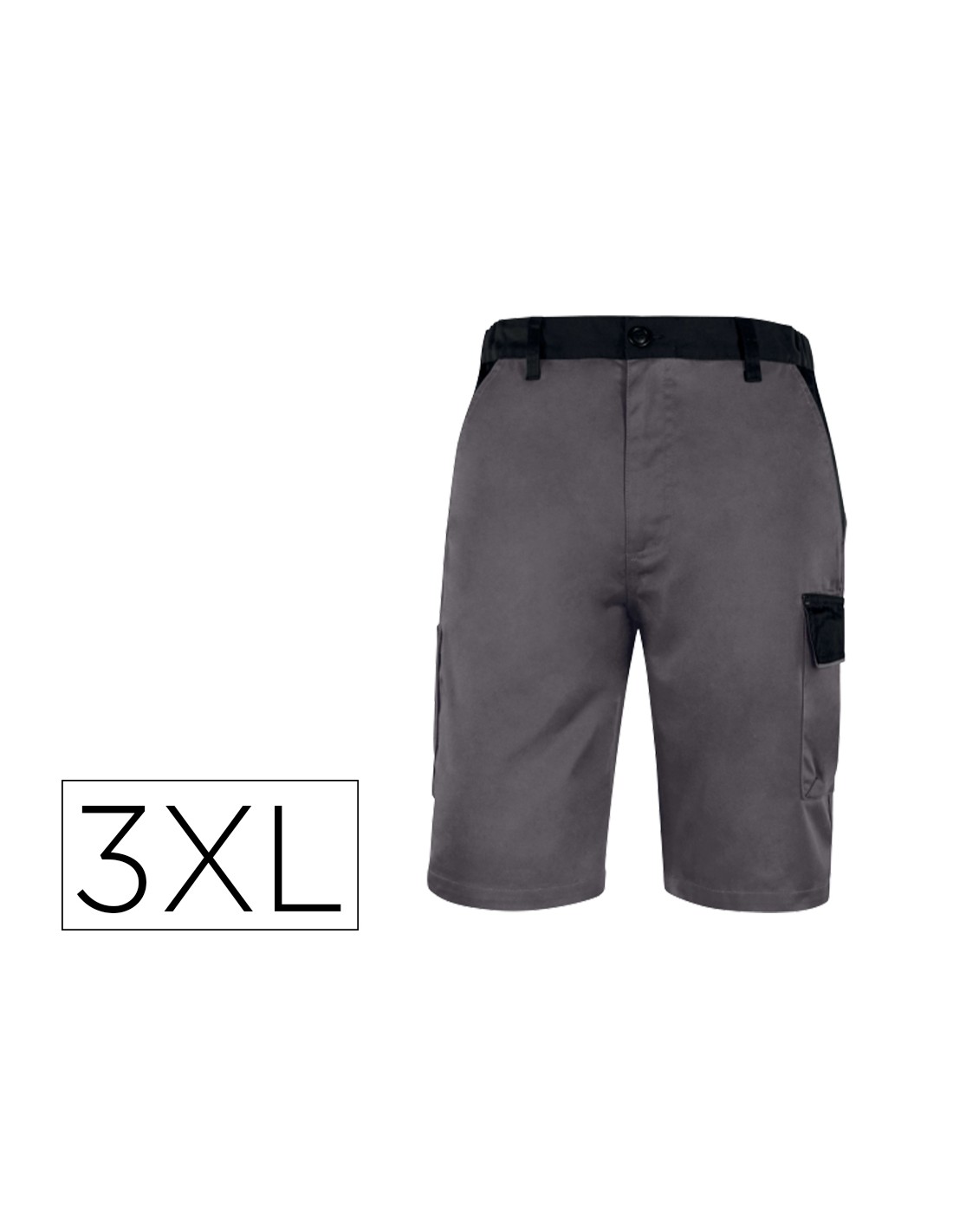 Pantalon de trabajo deltaplus bermuda cintura ajustable 5 bolsillos color gris. Talla 3XL. Tejido 65% poliéster y 35% algodón de 235 g/m². Cintura ajustada por elástico. 5 bolsillos.