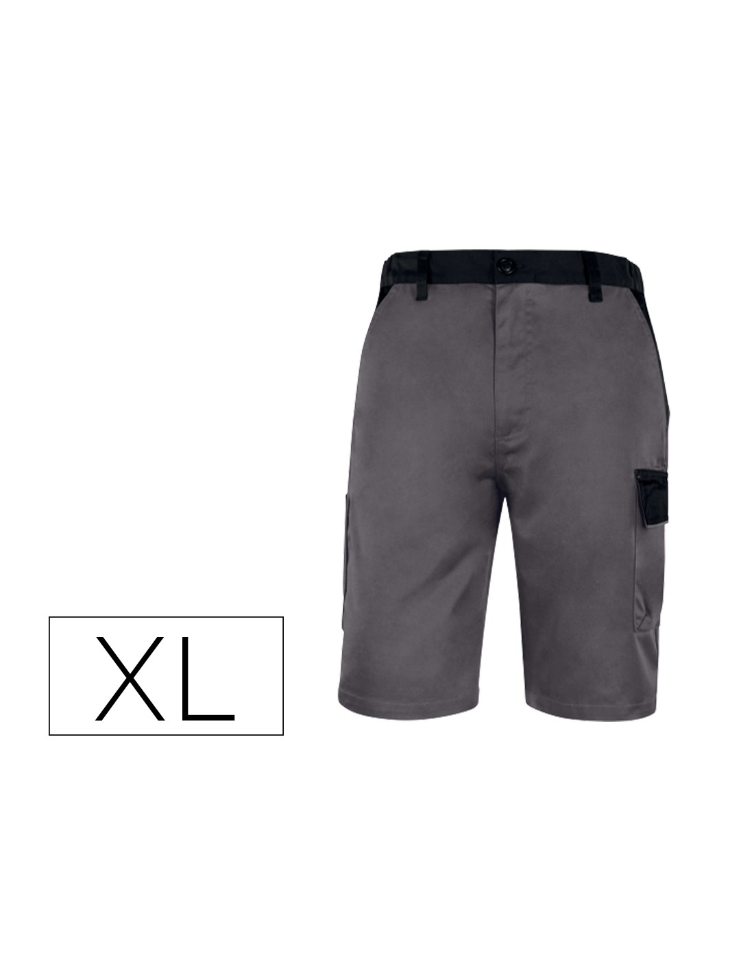 Pantalon de trabajo deltaplus bermuda cintura ajustable 5 bolsillos color gris. Talla XL. Tejido 65% poliéster y 35% algodón de 235 g/m². Cintura ajustada por elástico. 5 bolsillos.