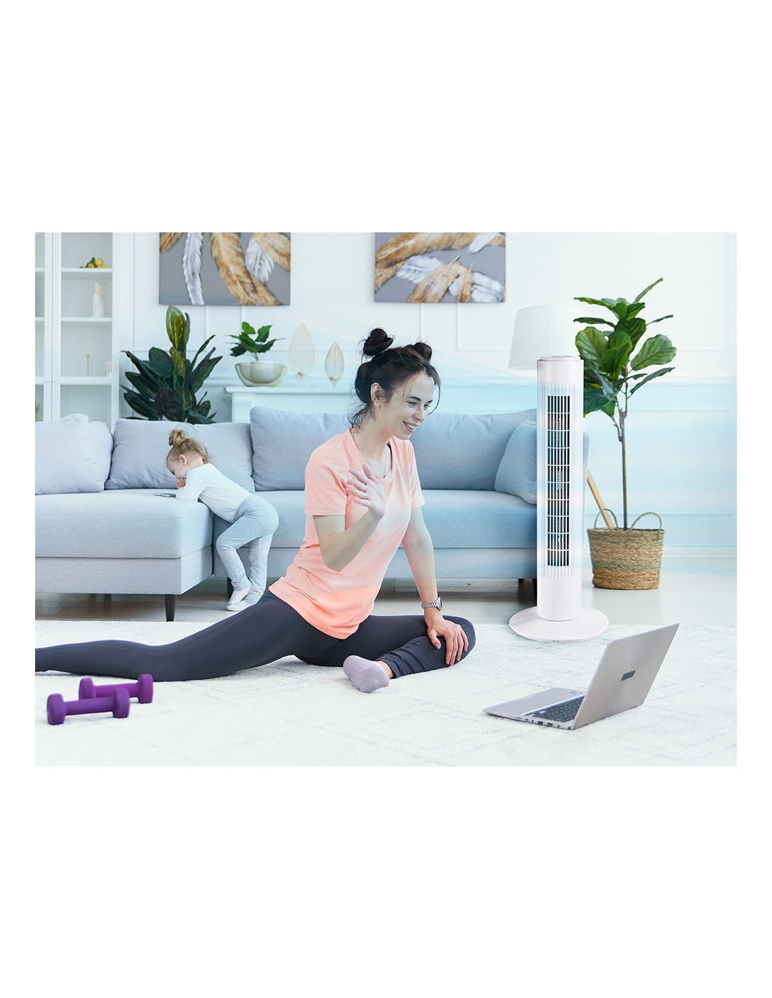 Ventilador de torre jocca 3 velocidades 45w sistema oscilacion altura 730 mm 730x170x170 mm