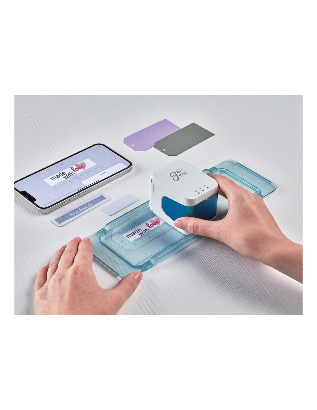 Ideal para utilizar con cintas, pulseras, carteles y la gama de etiquetas e-mark. Tamaño (largo x ancho x alto) 250 x 10 x 85 mm.